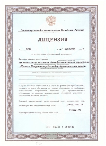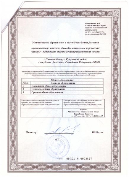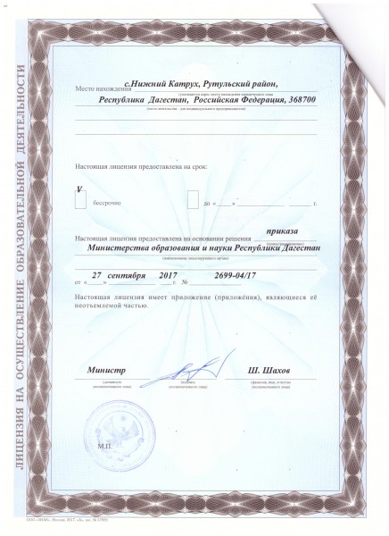 | Адрес местонахождения образовательной организации* | 368700, республика Дагестан, Рутульский район, село Нижний Катрух |